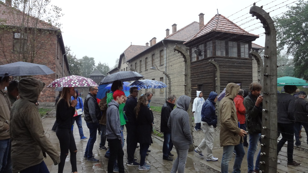 Am 8.Tag unserer Ostreise stand uns zunächst ein schwerer und emotionaler Abschied von den polnischen Gastfamilien bevor. Nachdem dann aber die letzten Geschenke übergeben, Erinnerungsfotos geschossen und auch ein paar Tränen vergossen wurden, machten wir uns auf den Weg in den südlicheren Teil Polens, genauer gesagt nach Krakau. Auf unserem Weg in die historische Stadt an der Weichsel besuchten wir das ehemalige Konzentrationslager und heutige Museum Auschwitz-Birkenau. Dabei wurden wir von einem Guide begleitet, der allgemeine Informationen zu den geschichtlichen Hintergründen und Gegebenheiten lieferte. Zuerst gingen wir an der Küche vorbei, wo die Gefangenen des Konzentrationslagers jeden Morgen und Abend dazu gezwungen wurden fröhliche Marschmusik zu spielen, um das Ein- und Ausmarschieren der Zwangsarbeiter zu beschleunigen. Anschließend gingen wir in eine ehemalige Wohnbaracke, die zu einem Ausstellungsort umgestaltet wurde. Danach besichtigten wir einstige Waschräume, Aufenthaltsräume der Gestapo, der geheimen Staatspolizei, sowie verschiedene Zellentypen, in denen die Gefangenen unnormalen physischen Belastungen ausgesetzt wurden. Folgend besuchten wir das Krematorium und die Gaskammern. Im Anschluss an die Besichtigung von Auschwitz I, fuhren wir in den zweiten Teil des Konzentrationslagers Auschwitz II, Birkenau. Von diesem Teil sind nur noch Überreste erhalten, da die Nazis in Folge des Einmarsches der Russen eine Vielzahl ihrer Vernichtungsapparate zerstörten. In Auschwitz II sahen wir uns zuerst die Bahn-Nebenrampe an, dann die Gedenkstätte zur Erinnerung der Morde in dem Massenvernichtungslager. Zuletzt besuchten wir die ehemaligen Wohnbaracken der Frauen, in denen wie im gesamten Lager menschenunwürdige Zustände herrschten. Nach einer vierstündigen Führung kehrten wir erschöpft in den Bus zurück und fuhren zu unserem Hotel in Krakau, in dem wir sogleich das Abendessen zu uns nahmen. Aufgrund des langen und anstrengenden Tages gingen wir danach gleich ins Hotelzimmer und schliefen kurz darauf ein.