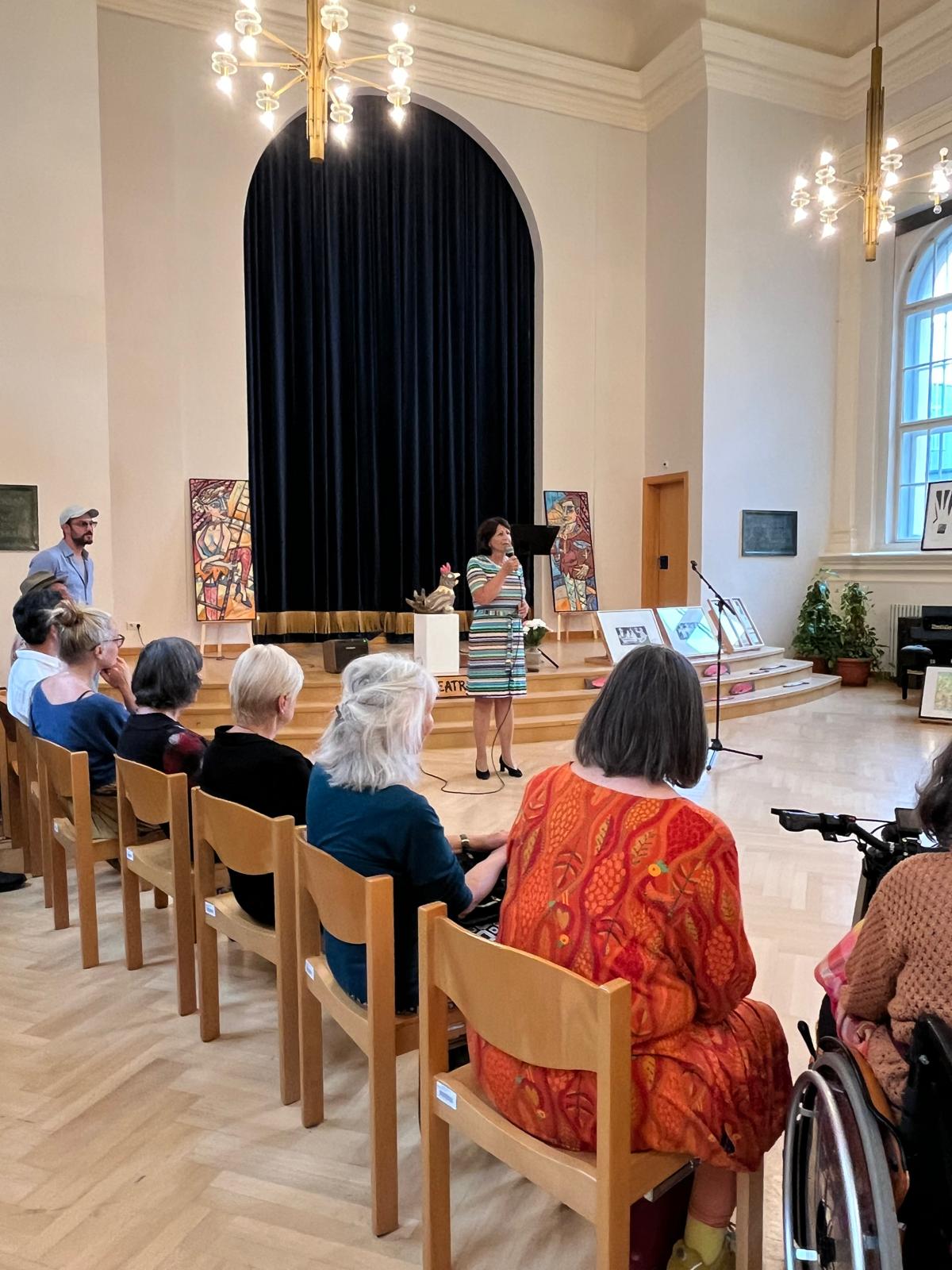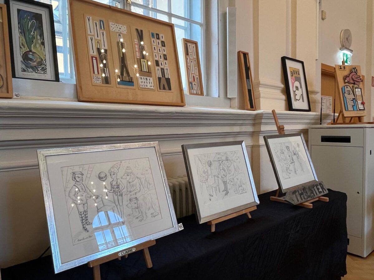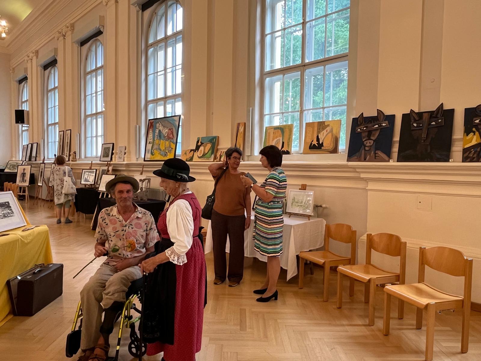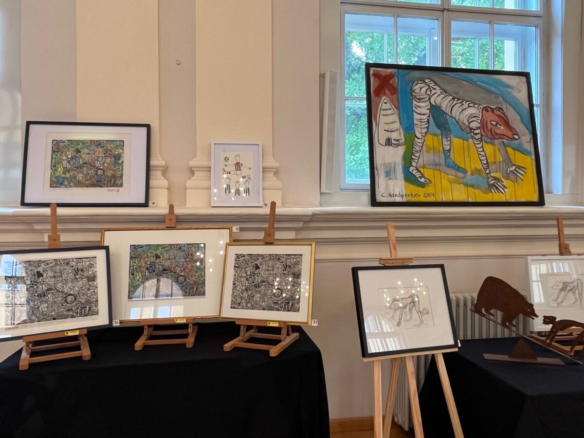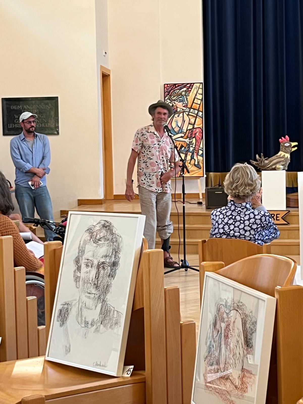 Eindrucksvoll zusammengestellt sind noch bis Donnerstag im Festsaal zahlreiche Bilder in verschiedenen Techniken und Materialien, diverse Drucktechniken, Skulpturen und Zeichnungen aus verschiedenen Lebensabschnitten, zu einer wunderschönen Schau aus den Jahren 1997 bis 2021. Fast alle Werke können käuflich erworben werden, etliche wurde an diesem Abend schon verkauft.