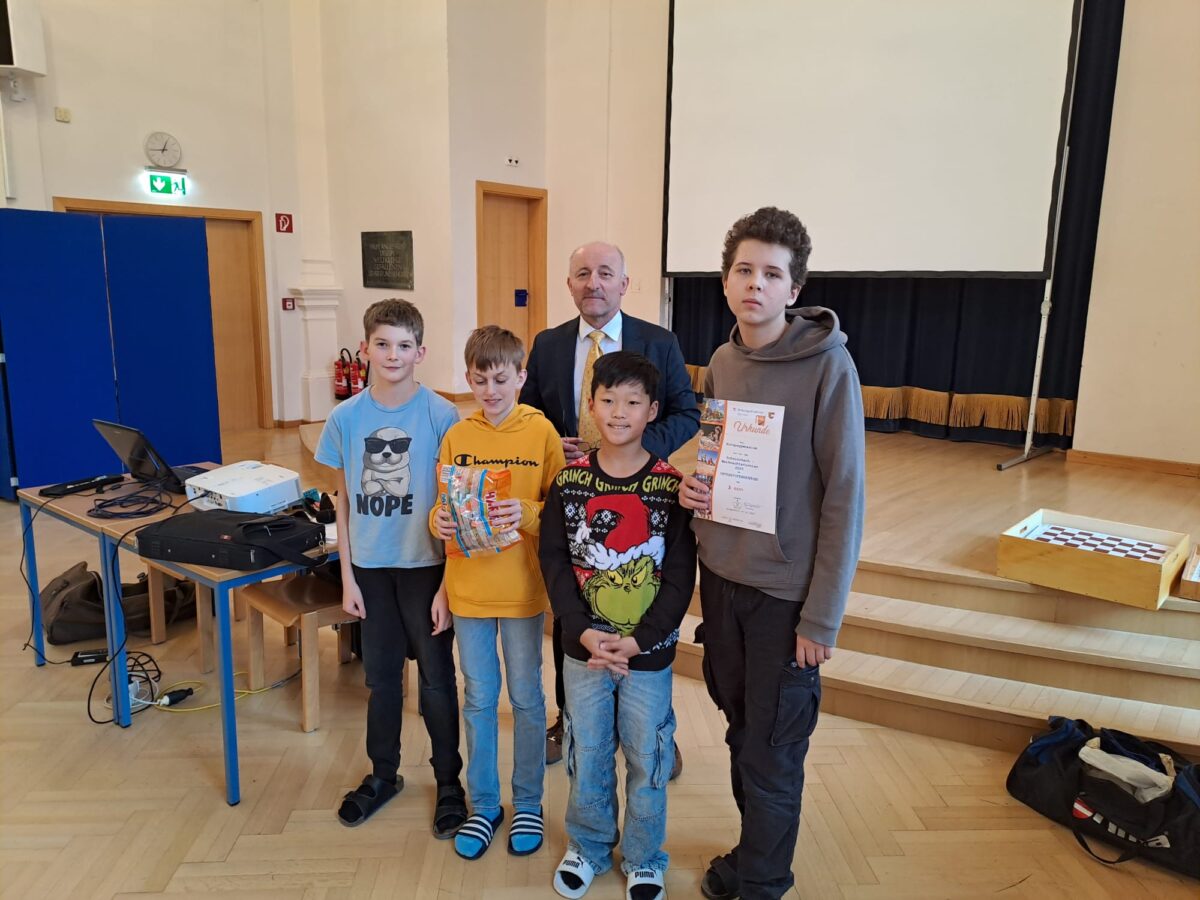 Auch heuer wieder rauchten beim traditionellen, kärntenweit ausgeschriebenen Schulschach-Weihnachtsturnier (Volksschulen, Unterstufenberwerb, Oberstufenbewerb) in unserem Festsaal die Köpfe. Unsere Spieler hatten viel Spaß und konnten sogar Medaillen erringen: Die Oberstufenmannschaft holte Silber (12 teilnehmende Schulen), die Unterstufenmannschaft Bronze (10 teilnehmende Teams). Tagessieger in der Einzelwertung wurde Leonardo Leschanz aus unserer 8c!!