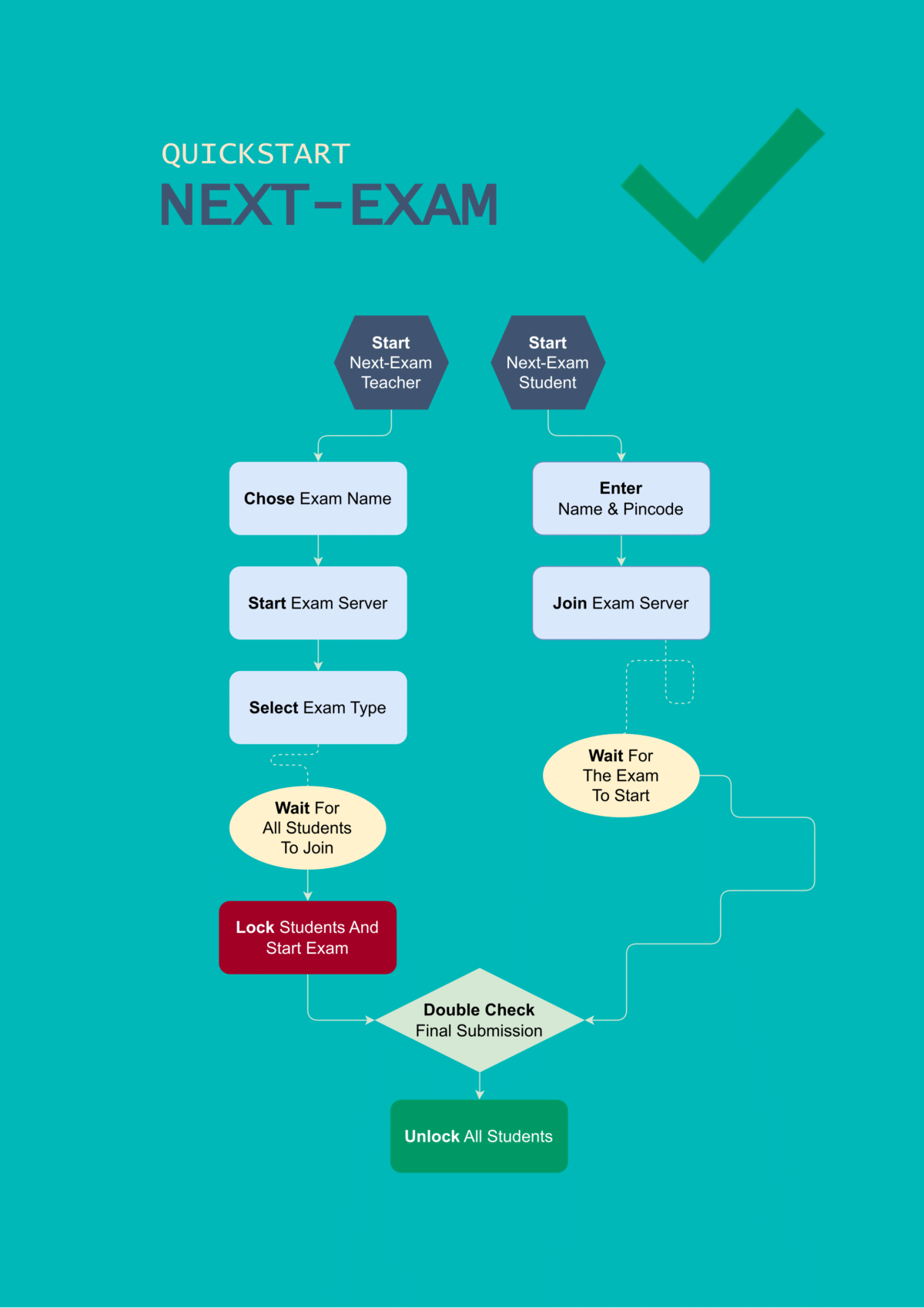 Mit Hilfe von Next-Exam können Schulen schnell und problemlos eine sichere digitale Prüfungsumgebung zur Verfügung stellen, die Datenschutz, Sicherheit vor Schummeln und vor allem Sicherheit vor Datenverlust während der Prüfung garantiert.